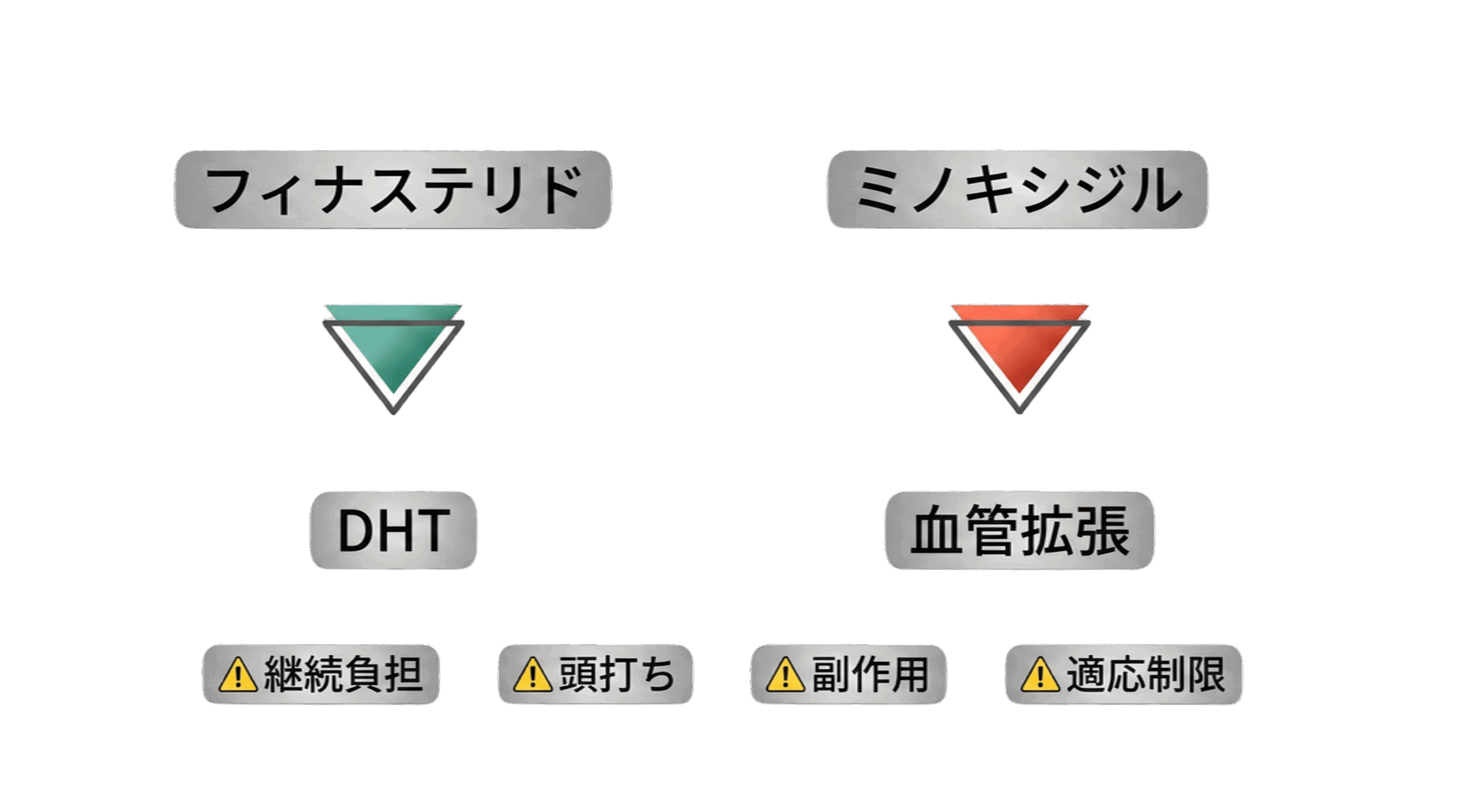 このようにAGA薬は一般的な薄毛対策である一方で、「不適切な処方」「効果の限界」「継続の負担」「副作用リスク」という課題を抱えているのです。