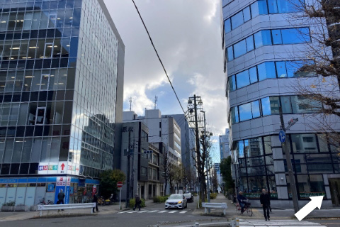 スパイラルタワー横の道を