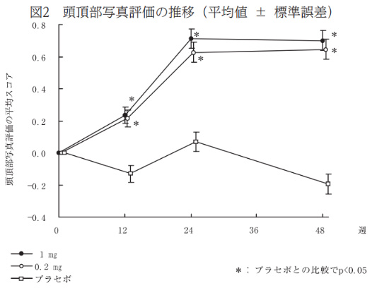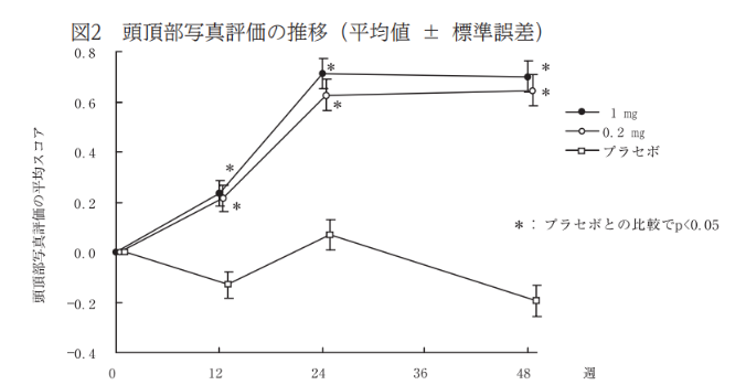 フィナステリドの治験結果では、1mgも0.2mgも効果に有意差は認められない(科学的に同等の効果と判断できるという意味)にも関わらず、1mgを中心に処方する医療機関が多くあります。