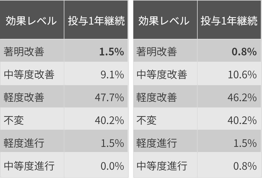 同薬の治験の結果によると、効果は半年で頭打ちになります。