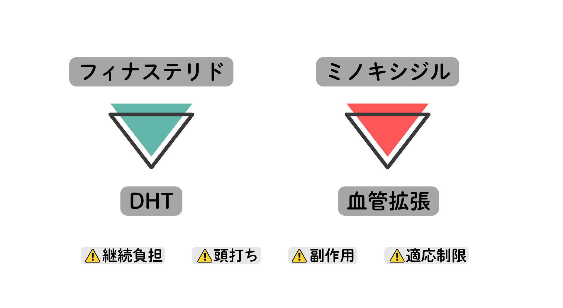 フィナステリド系は「ホルモンバランスに作用する」ため、性機能や気分への影響が報告されています。女性には使用できず、妊娠・授乳期は特に禁忌です。